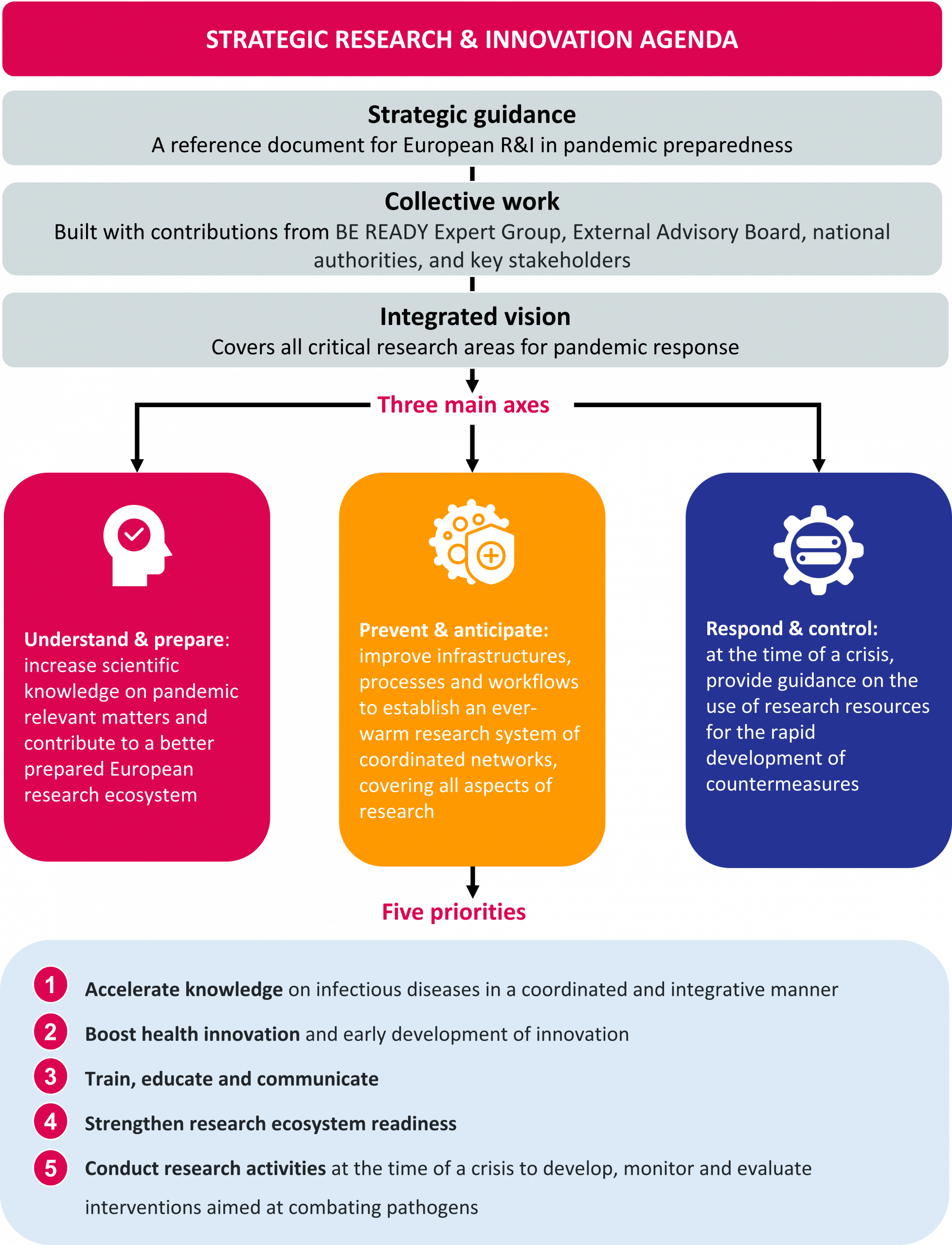 Taken into account inputs from recognised experts in a wide range of disciplines from European Member States and institutions and stakeholders involved in pandemic preparedness at regional, national, European and international level, the partners of the CSA BE READY have developed a first version of the SRIA, which is now published.