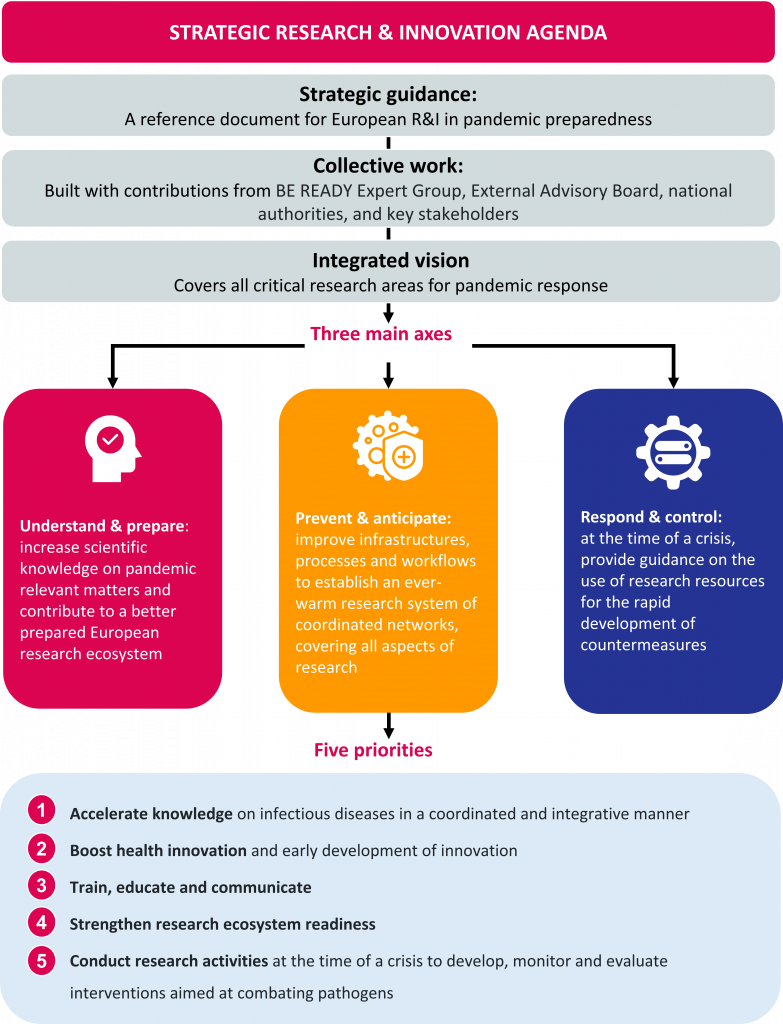 At the heart of its activities lies the Strategic Research and Innovation Agenda (SRIA), a guiding document for pandemic preparedness research priorities in Europe. This agenda has been developed through broad consultation with experts and stakeholders and is continuously updated.